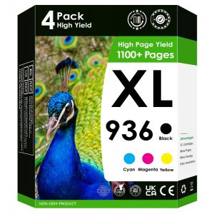 HP 936XL / 936e Combo Pack Compatible Ink. Works with 9110b 9122e 9125e 9135e 9128e 9130b Printers. 4 Pack (Black, Cyan, Magenta, Yellow)